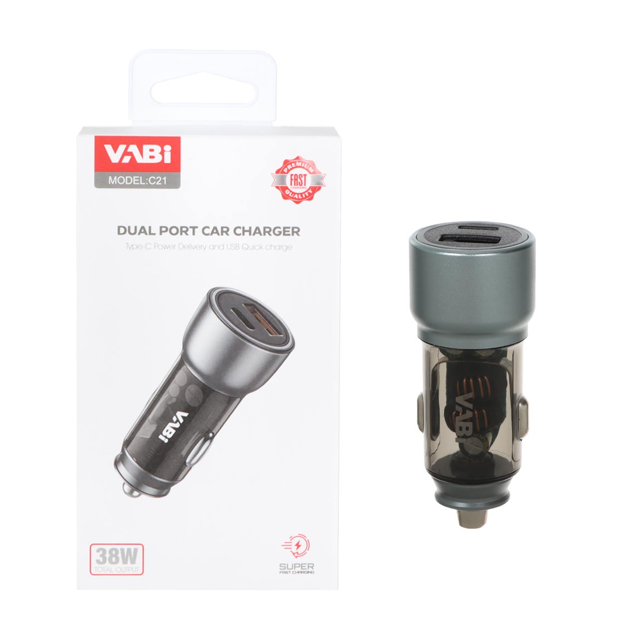 شارژر فندکی فست و PD دو پورت VABI مدل C21 38W - خاکستری۴۹۵٬۰۰۰ 4%