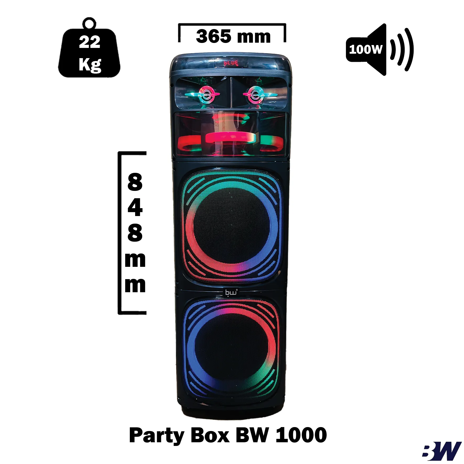اسپیکر خانگی بوم باکس ۱۰۰۰ از برند BW یک سیستم صوتی قدرتمند است که برای استفاده در محیطهای خانگی و حتی فضاهای باز طراحی شده است.